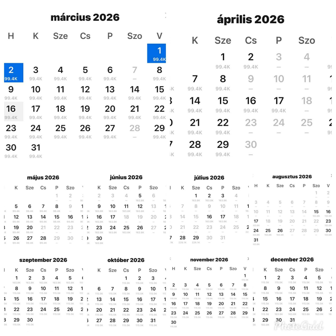 A feketével jelölt napok szabadok! (Március 1.-i állapot!)