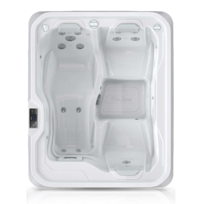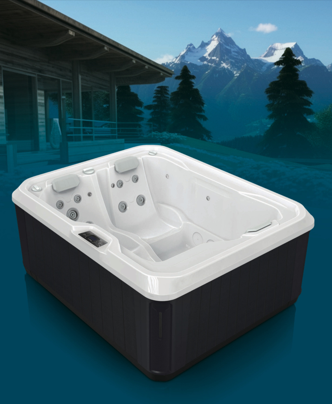 Két ülőhely és egy teljes értékű fekvőhely, modern vezérlés és 230V-os csatlakozás – egyszerű telepítés, valódi wellness élmény.