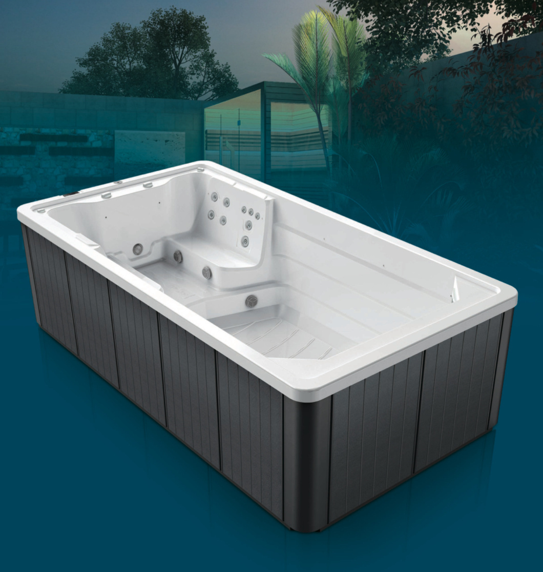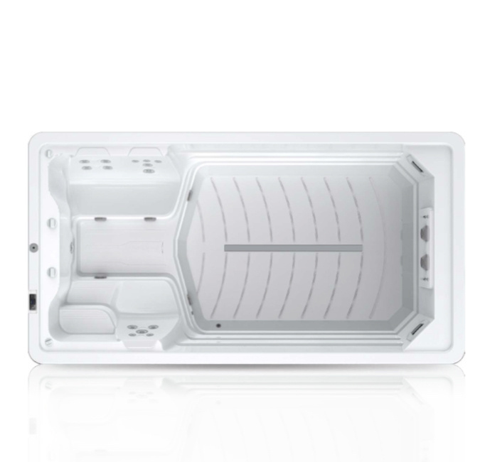Ez egy kompakt otthoni úszómedence, amely egyesíti a valódi úszás élményét és a teljes értékű hidromasszázst.